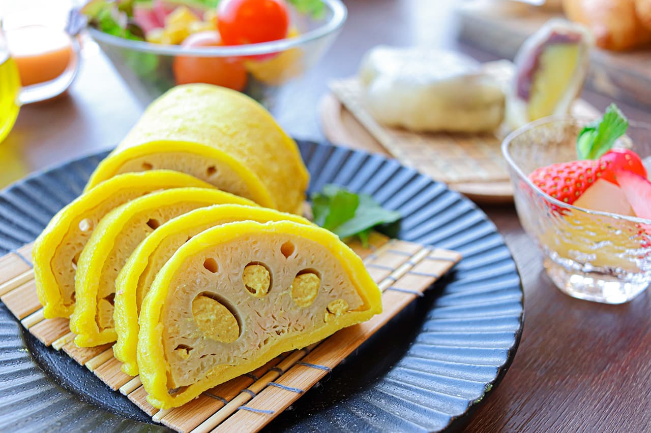 レンコンの穴に辛子味噌を詰め、衣をつけて揚げた熊本の名物郷土料理。ピリ辛が特徴です。